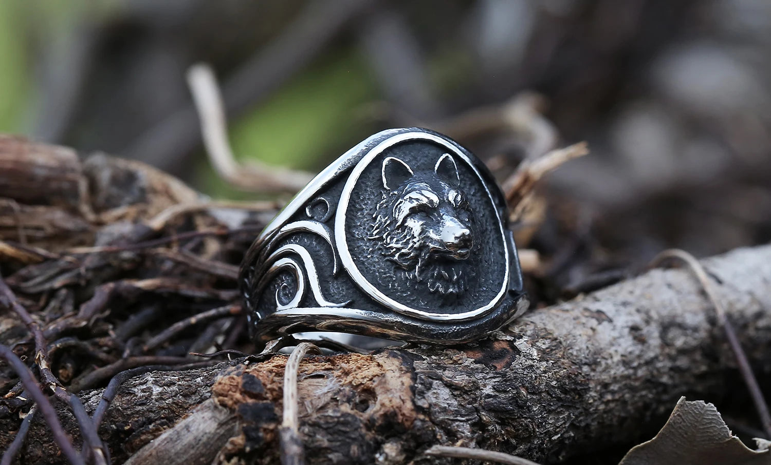 Viking Nordic Wolf Men Ring Animal Defense Totem Wolf Fashion Hip Hop Rock Unisex Finger Ring Punk Gift V237