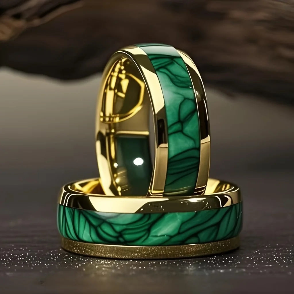 Fashion 8MM Men Domed Green Abalone Shell Inlay Stainless Steel Rings Gold Color Steel Rings For Wedding Engagement Jewelry Gift