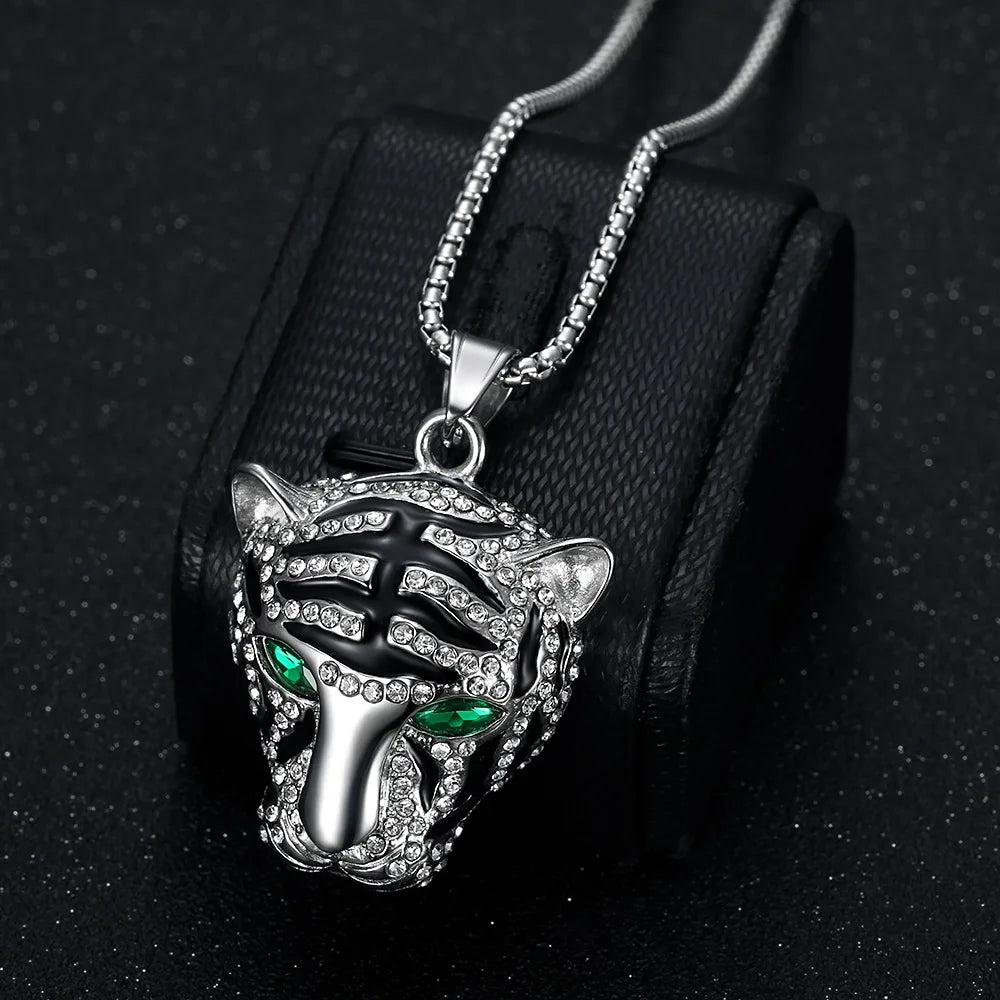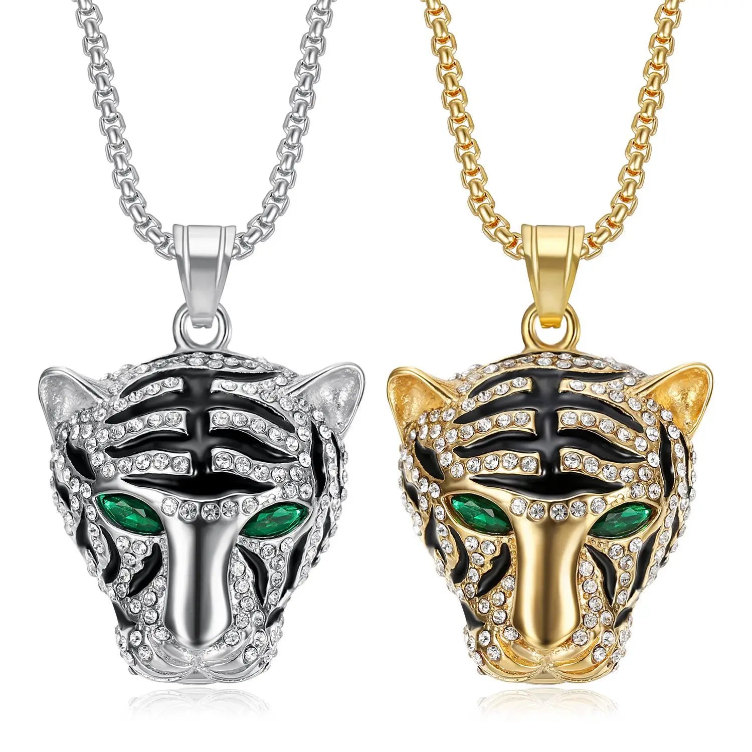 Fashion Stainless Steel Jewelry Silver Crystal Tiger Head Pendants Animal Designed Epoxy Wholesale Charms