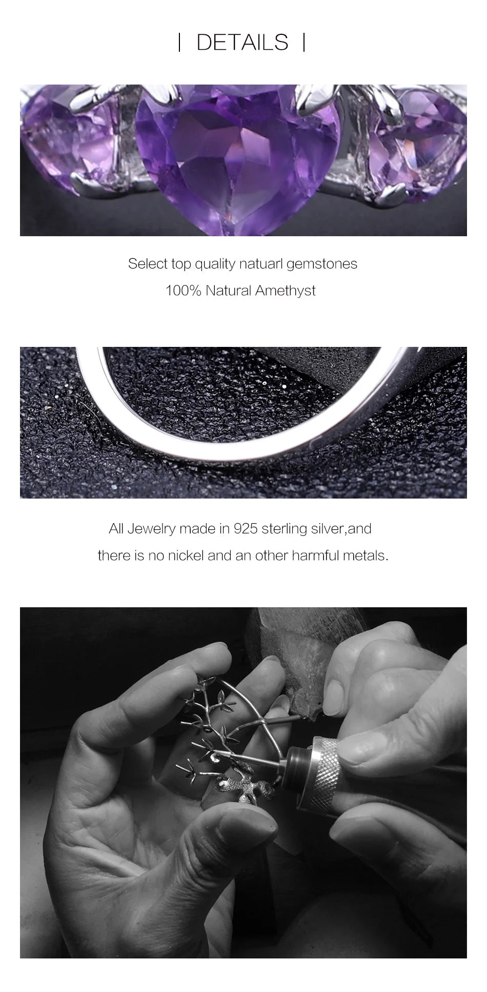 GEM'S BALLET 925 Sterling Silver February Birthstone Ring 1.71Ct Natural Amethyst Heart Rings For Women Valentine's Day Jewelry