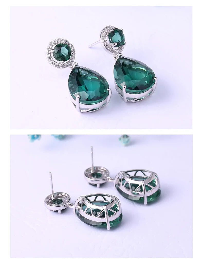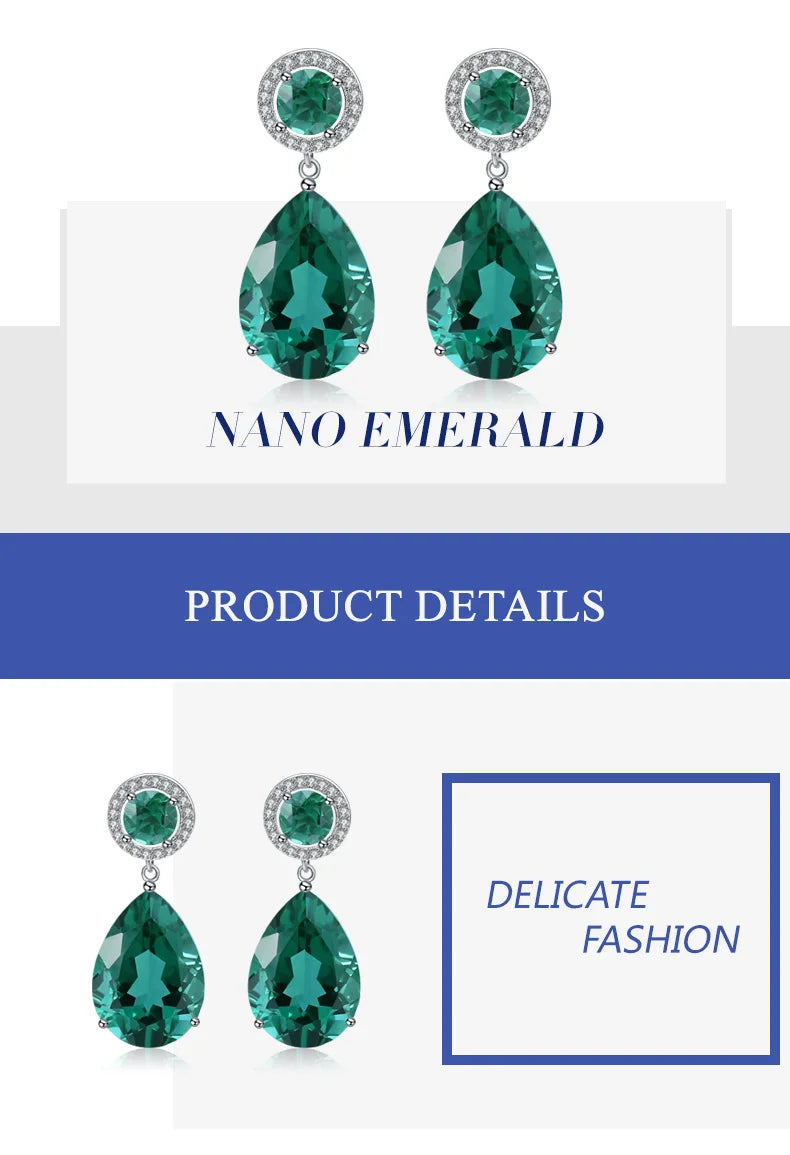 GEM'S BALLET Classic 22.98Ct Green Nano Emerald Drop Earrings Solid 925 Sterling Silver Earring Fine Jewelry For Women