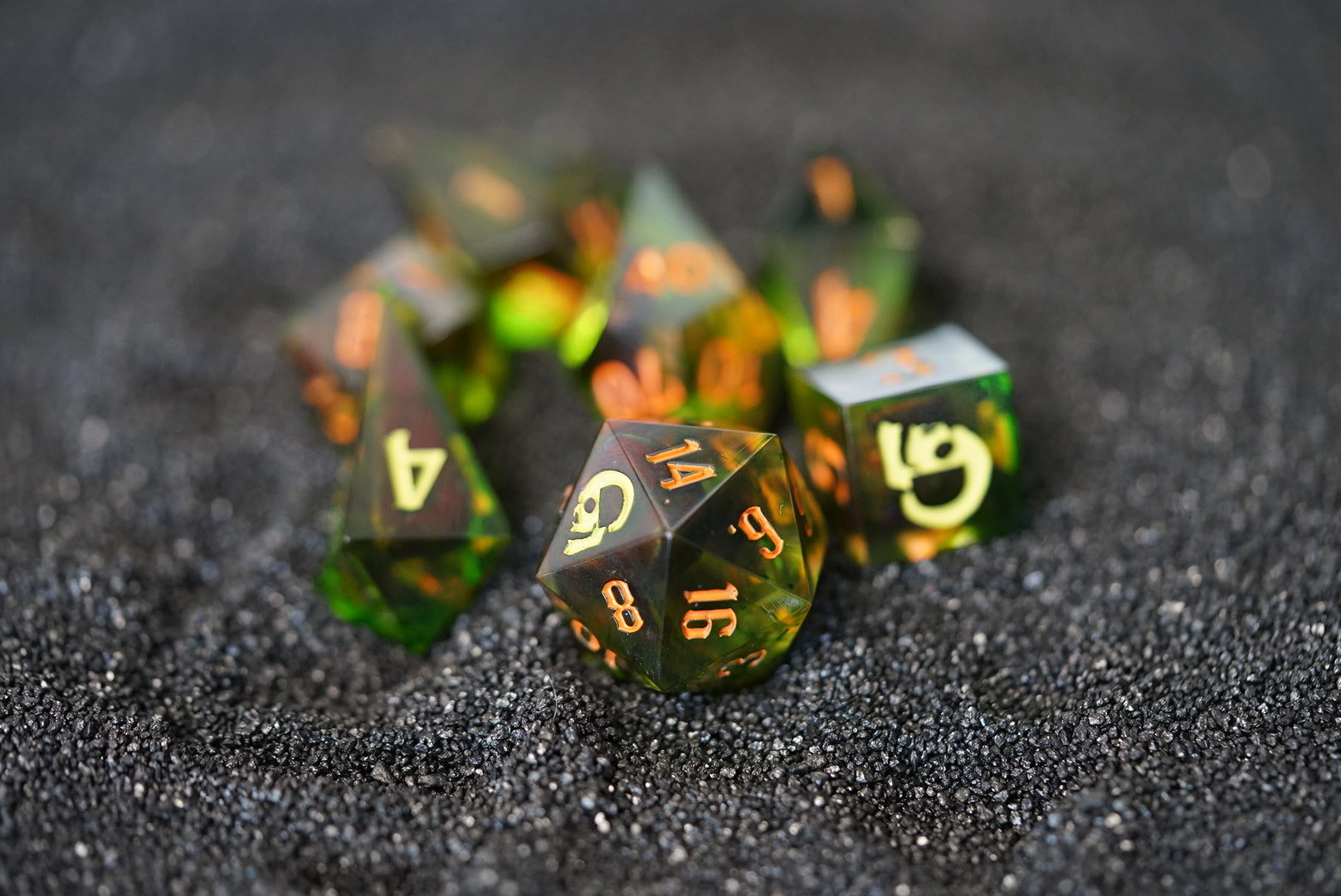 Swamp glam with a side of decay. This sickly green and rust-red set looks like it crawled out of a dungeon corner and has opinions about your Constitution save. Perfect for characters who thrive in filth—or cause