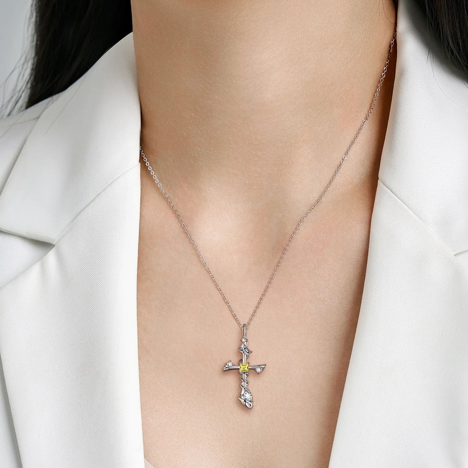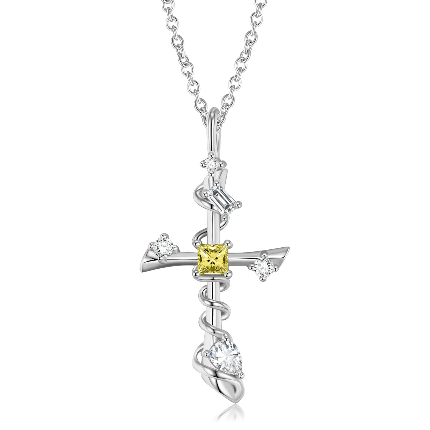 Zircon Cross Pendants for Necklace Authentic 925 Sterling Silver Necklaces Jewelry with Shiny Zircon Fashion Women Jewelry Gift
