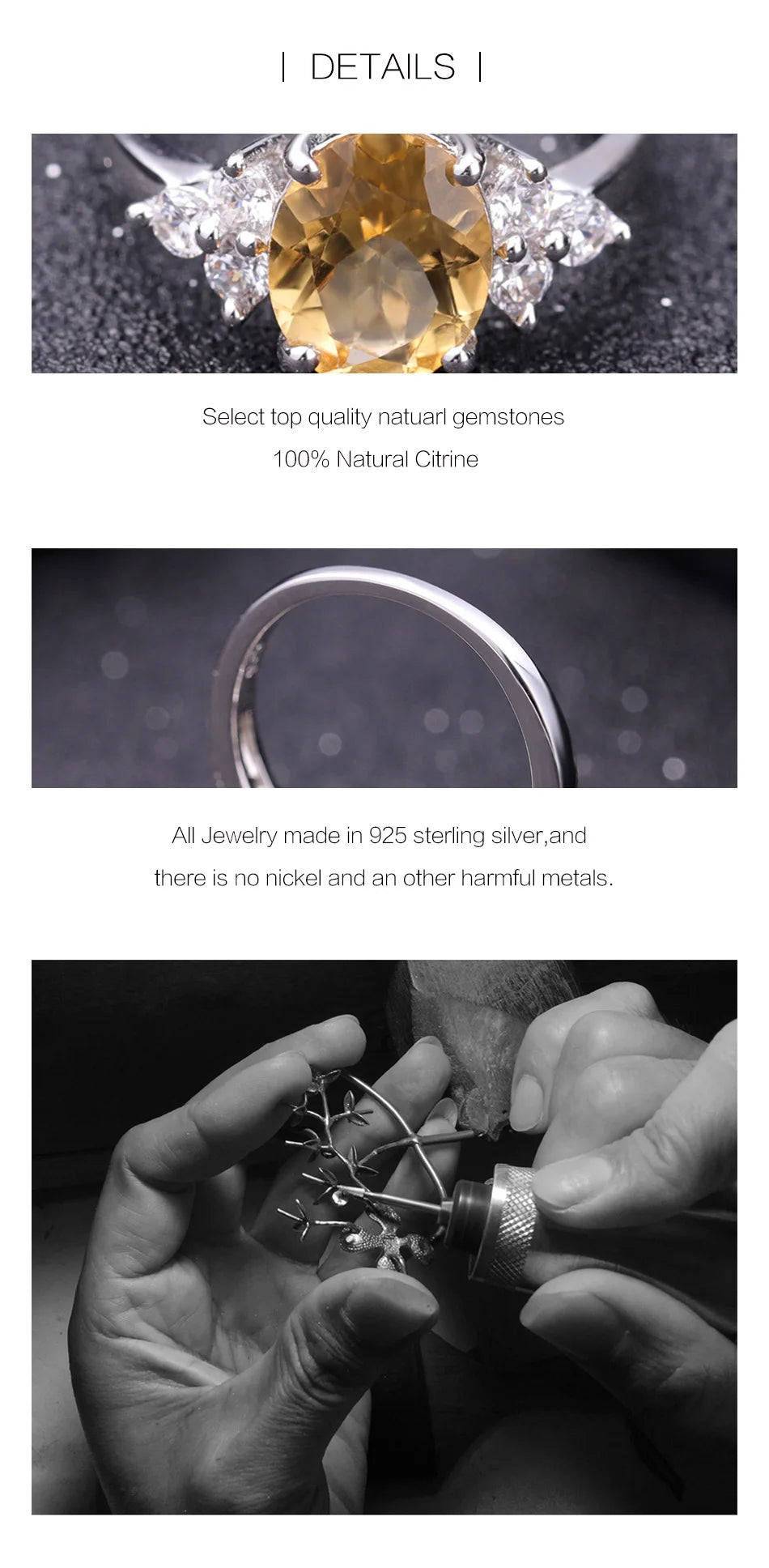 Anillo de aniversario clásico de citrino natural ovalado de 2,60 quilates de GEM'S BALLET para mujer, anillo de plata de ley 925 con piedras preciosas, joyería fina