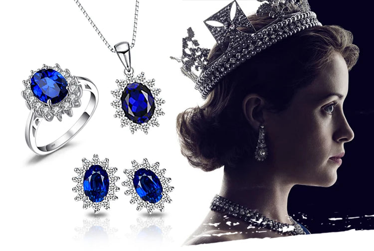 JewelryPalace Princess Diana Created Blue Sapphire 925 Sterling Silver Engagement Ring Ruby Natural Amethyst Citrine Blue Topaz