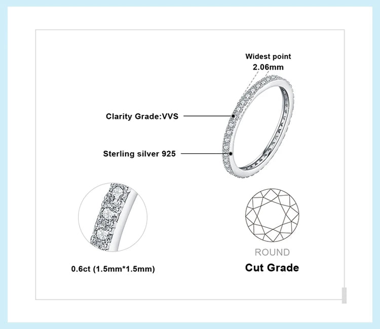 JewelryPalace 5A CZ Eternity Classic 925 Sterling Silver Wedding Engagement Band Ring for Woman Anniversary Gift Fine Jewelry