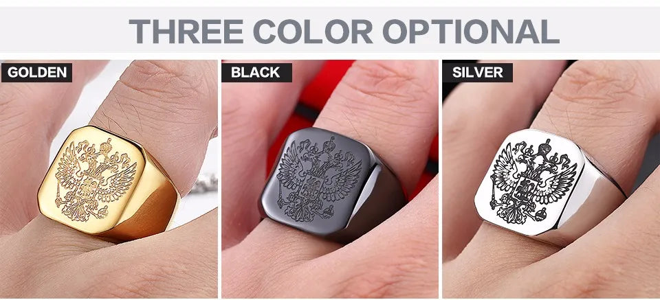 Beier Polished Stainless Steel ring Band Biker Men's ring a coat of arms of the Russian Signet Ring Fashion Jewelry