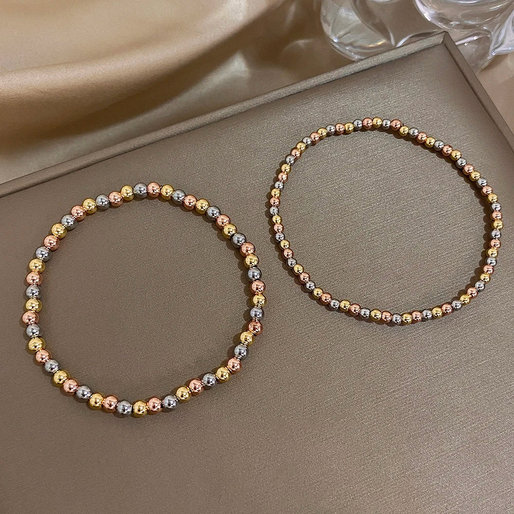 Greatera 3/4mm Stainless Steel Beads Elastic Bracelets for Women Gold Plated Tricolor Beaded Chain Bracelet Waterproof Jewelry