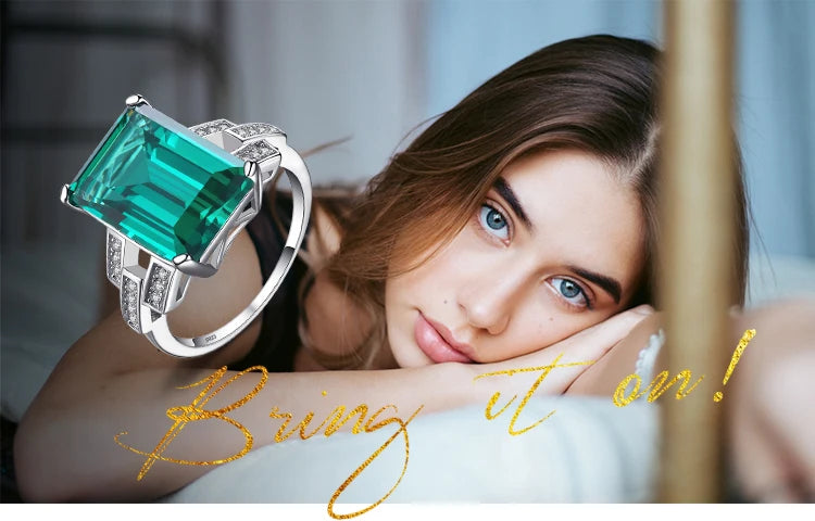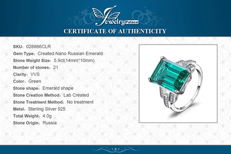 JewelryPalace 5.9ct Green Simulated Nano Emerald 925 Sterling Silver Ring for Women Jewelry Gift