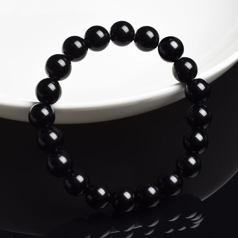 Natural Black Agates Beads Bracelet Women Men Genuine Black Onyx Natural Stone 6mm 8mm Smooth Round Beads Lucky Energy Jewelry