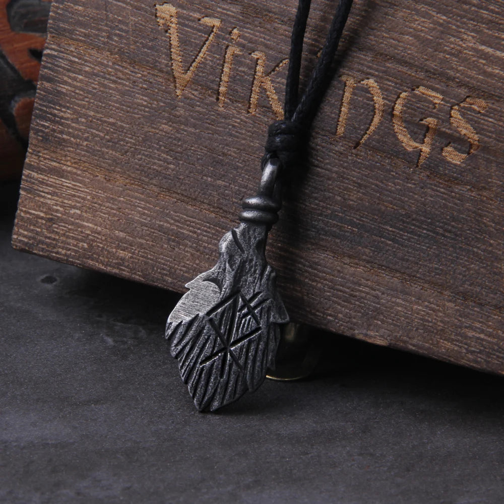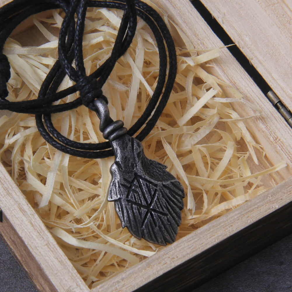Never Fade Gray viking rune pendant necklace for men gift adjustable chain with wooden box