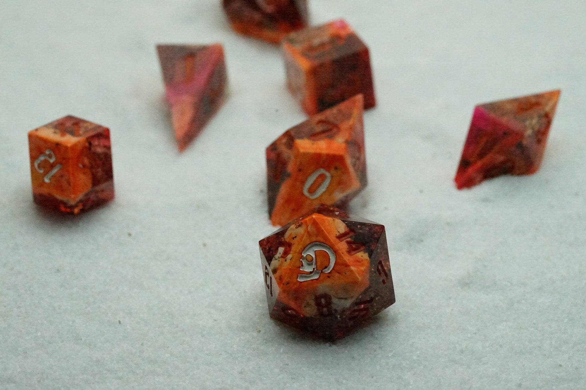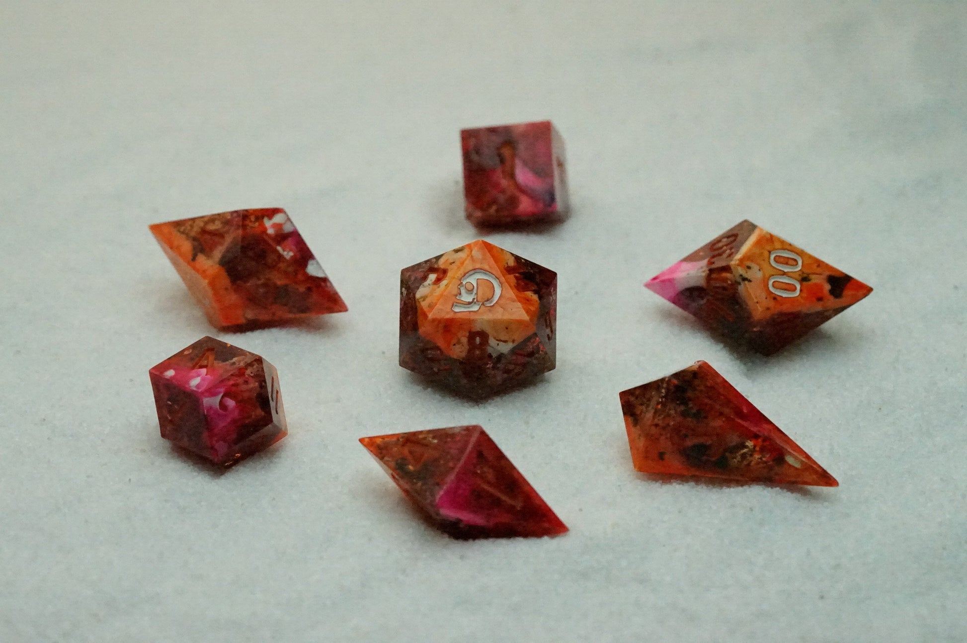 Harvested from a honey hive buried six feet under. These dice buzz with fermented energy and poor necromantic hygiene. Sweet, sticky, and questionably alive — ideal for warlocks who love a sugar rush.