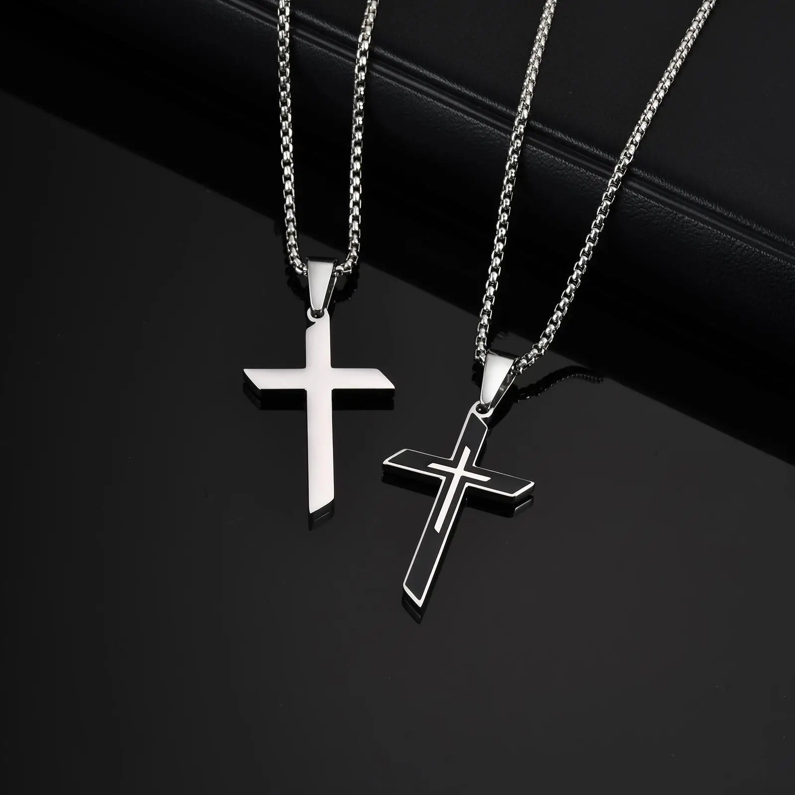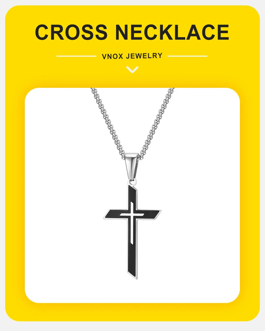 Vnox Simple Cross Pendant Necklace for Men Boys, Trendy Stainless Steel Box Chain Necklaces, Religious Talisman Anniversary Gift