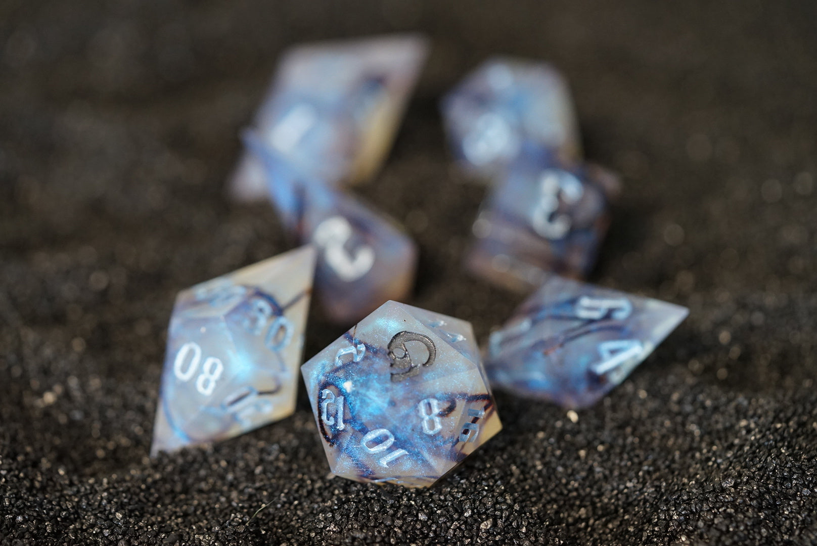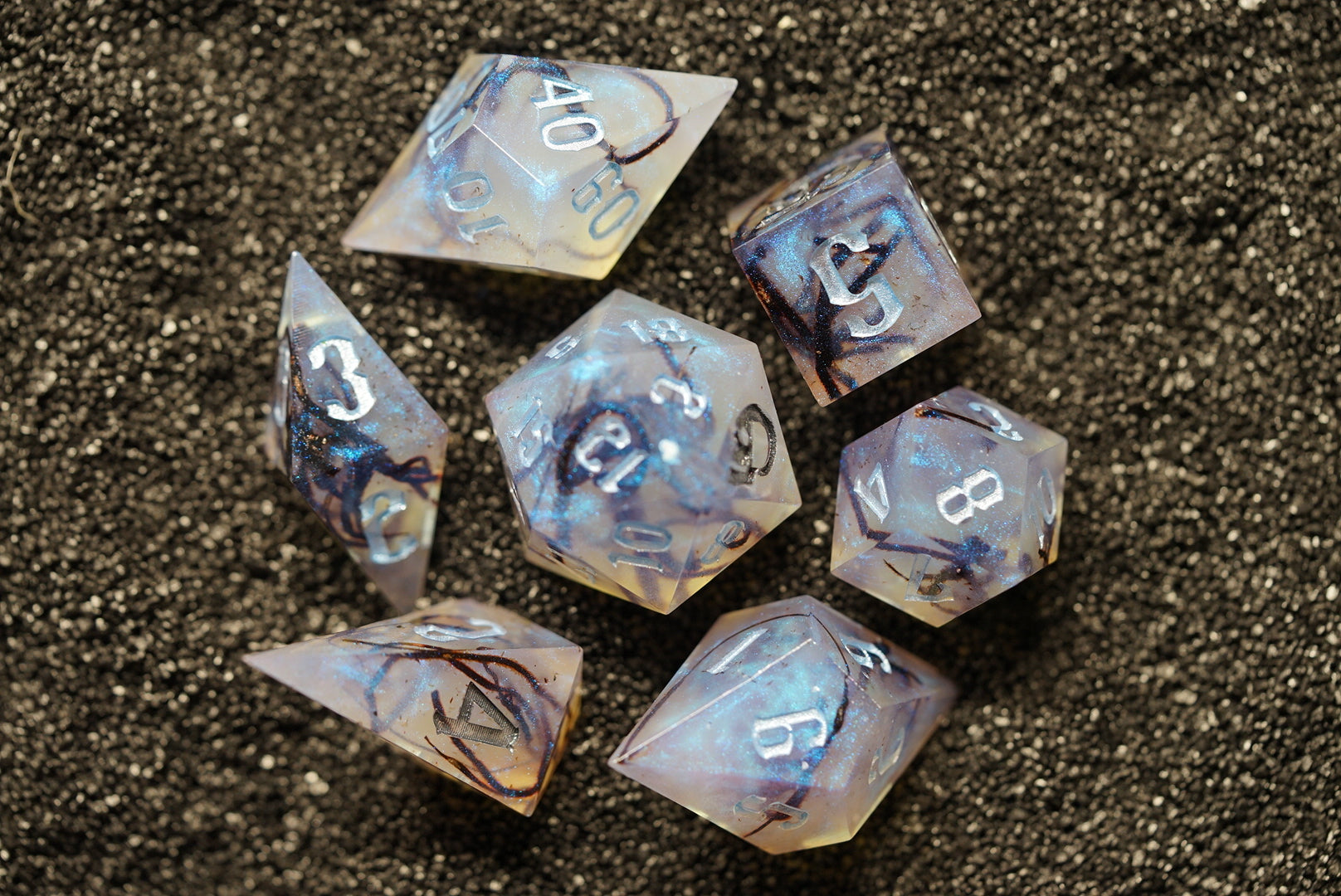 Smoldering from the guts of a disgruntled fire elemental. These dice flicker with ancient ash vibes and light pyromaniac tendencies. Caution: prolonged contact may cause spontaneous combustion of plotlines.