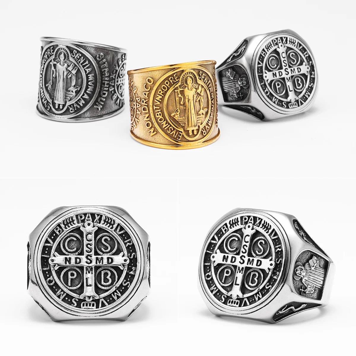 Catholic Saint Benedict Exorcism Amulet Men Rings Stainless Steel Women Jewelry Vintage Punk Fashion Accessories Gift Wholesale