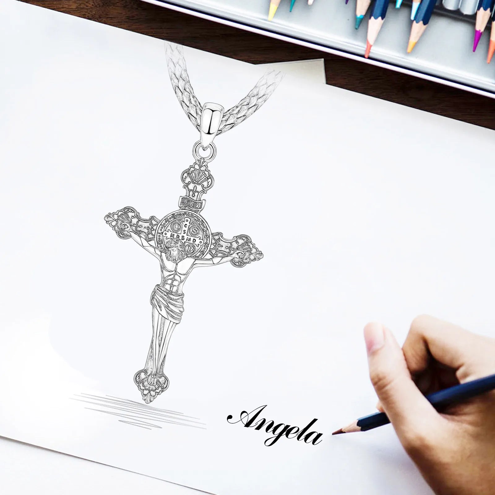 Eudora 925 Sterling Silver Jesus Necklace St. Benedict's Cross Vintage Amulet Pendant Religious Jewelry Gift for Men Women