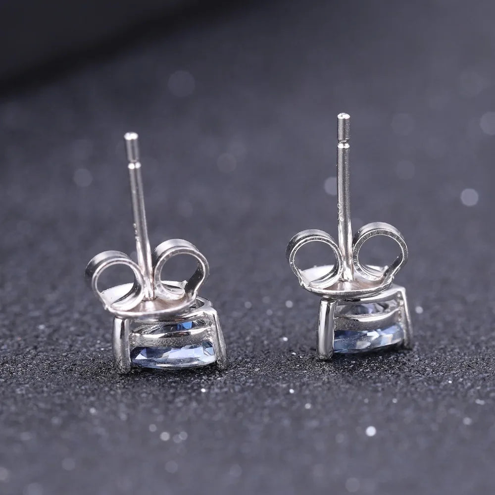 Gem's Ballet 4*6mm 0.99Ct Natural Swiss Blue Topaz Gemstone Stud Earrings 925 Sterling Silver Fashion Jewelry for Women