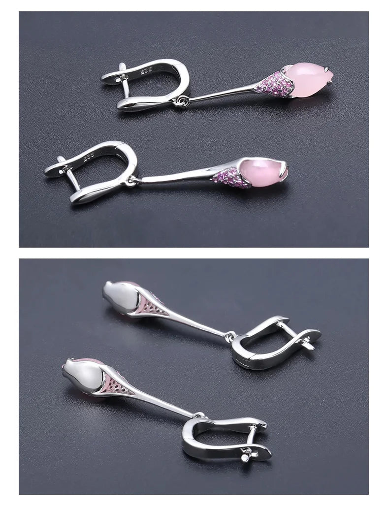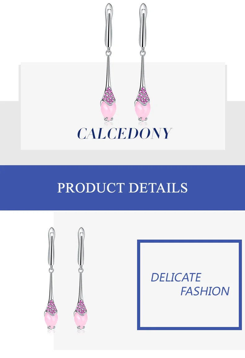 GEM'S BALLET Natural Pink Calcedony Earrings 925 Sterling Silver Gemstone Drop Earrings For Women Wedding Fine Jewelry