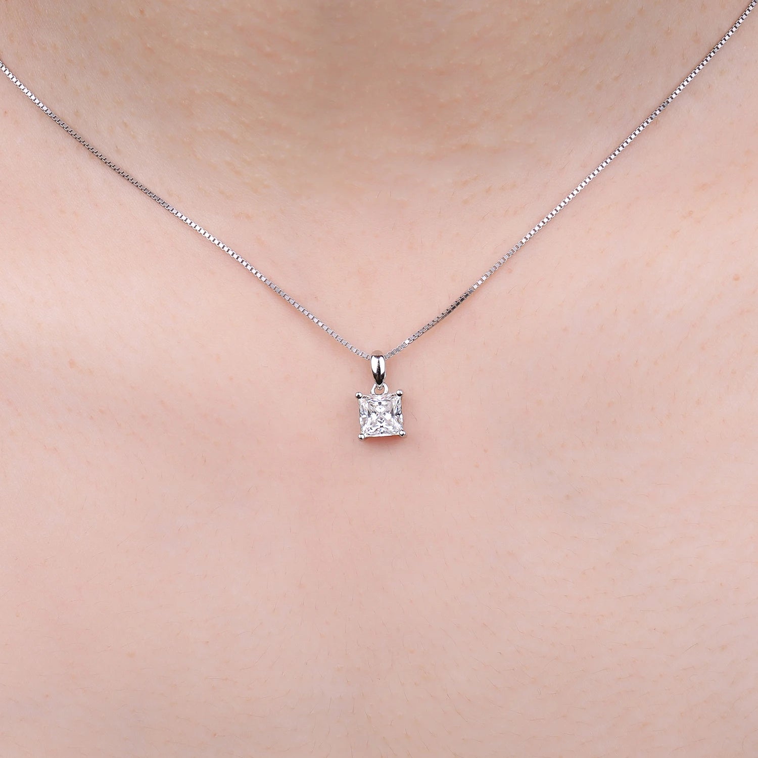 JewelryPalace Moissanite D Color 1ct Princess 925 Sterling Silver Pendant Necklace for Woman No Chain Yellow Rose Gold Plated