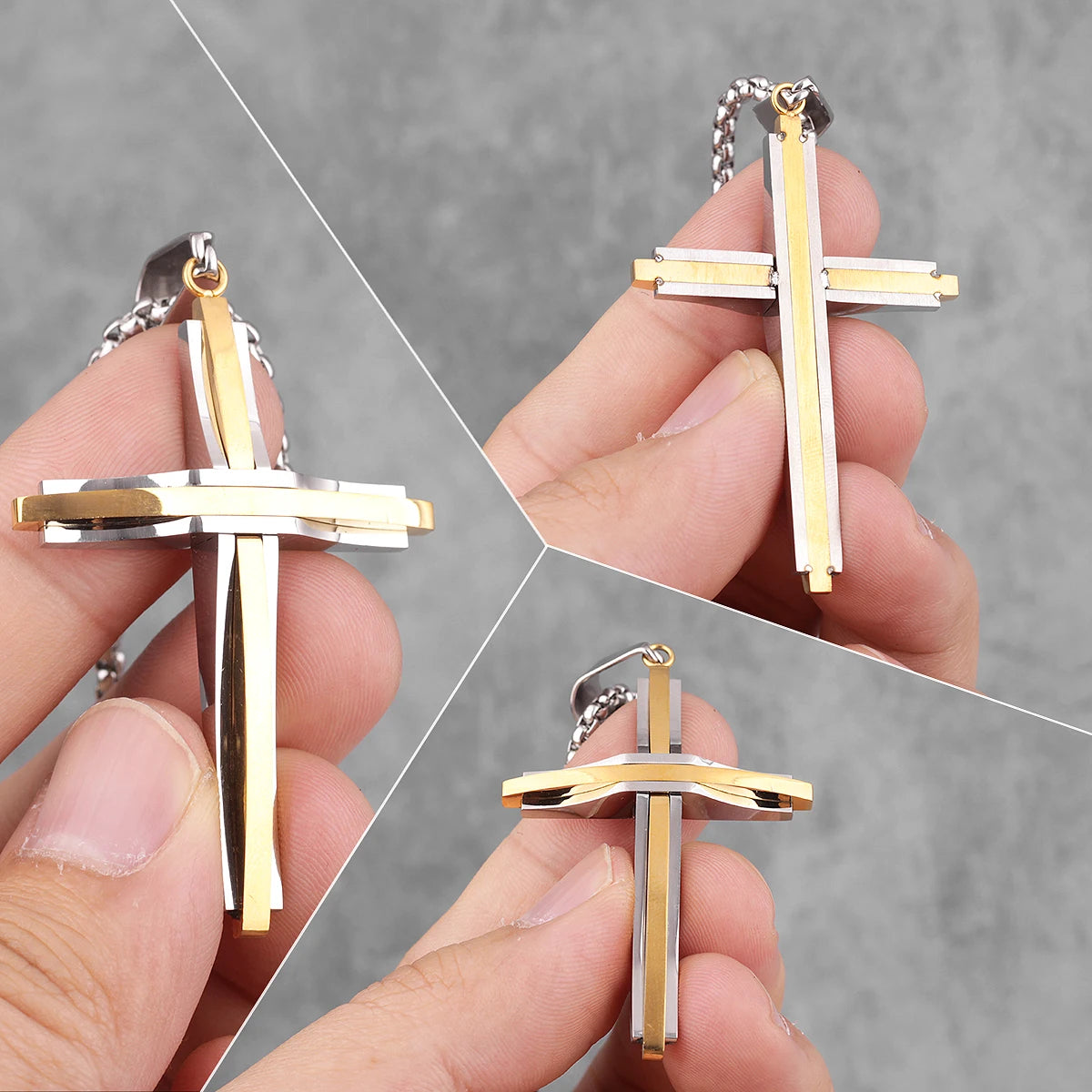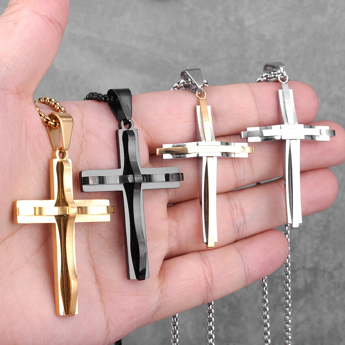 Stainless Steel Black Double Layers Cross Men Necklaces Pendants Chain Punk for Boyfriend Male Jewelry Creativity Gift Wholesale