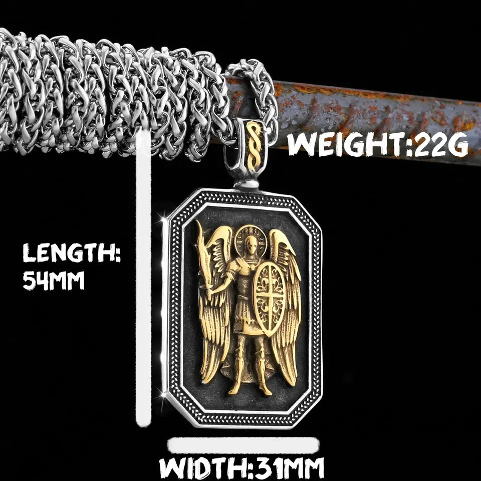 Stainless Steel Jesus Cross Charm Viking Necklace Men's Shield Dragon Slayer Amulet Pendant Saint Nicholas Juvenile Jewelry